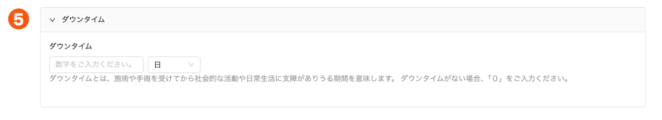 ⑤ダウンタイム:通常想定される適当なダウンタイムを入力してください。