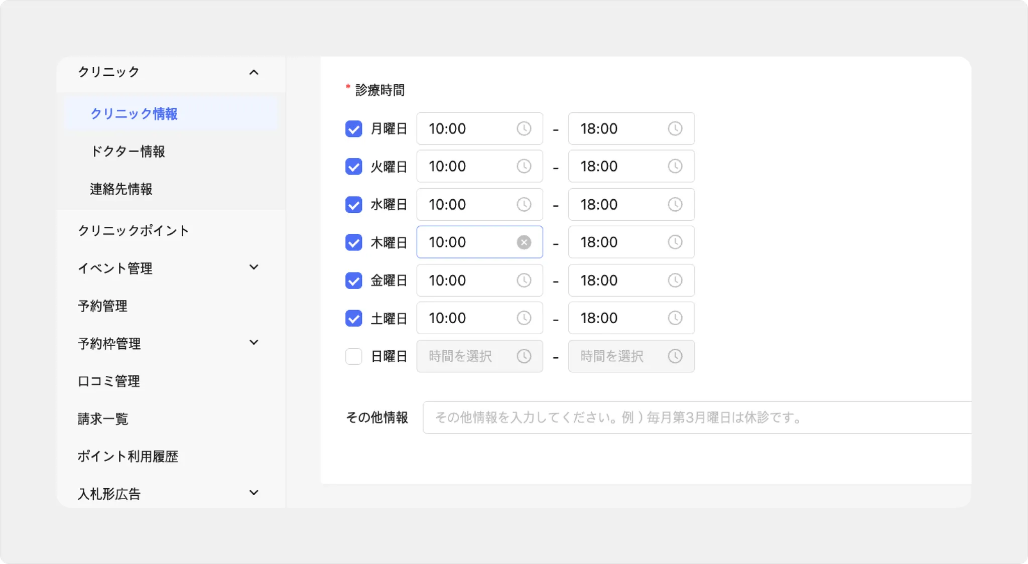 営業をお休みする日がある場合は、「臨時休診日」として設定してください。(臨時休診日を設定する)