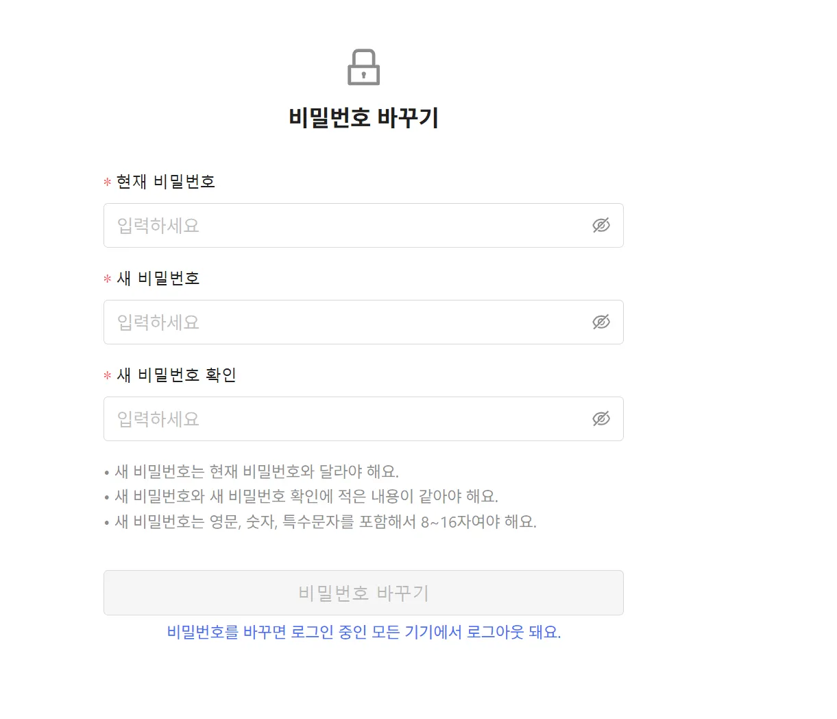 파트너센터 비밀번호 변경시, 아래 절차를 참고해주세요