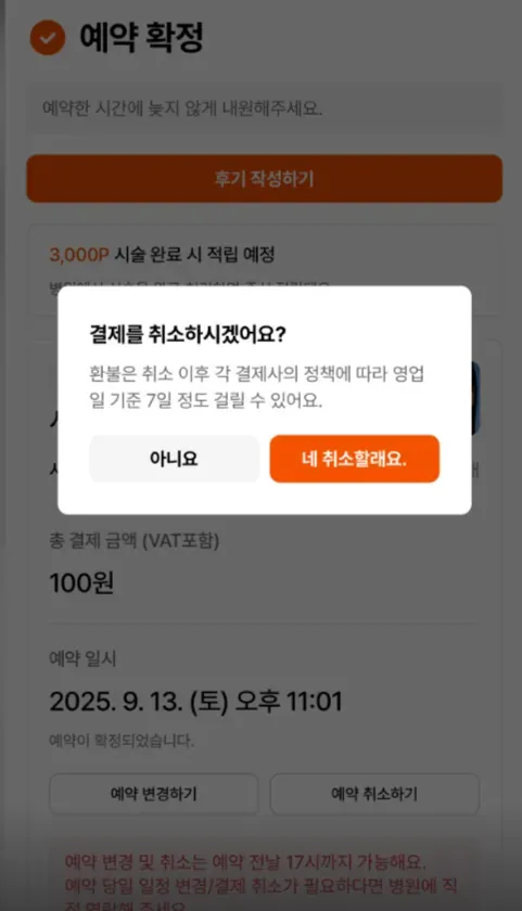 (필독!) 고객은 확정된 내원일 전날 17시까지 예약을 취소할 수 있습니다.