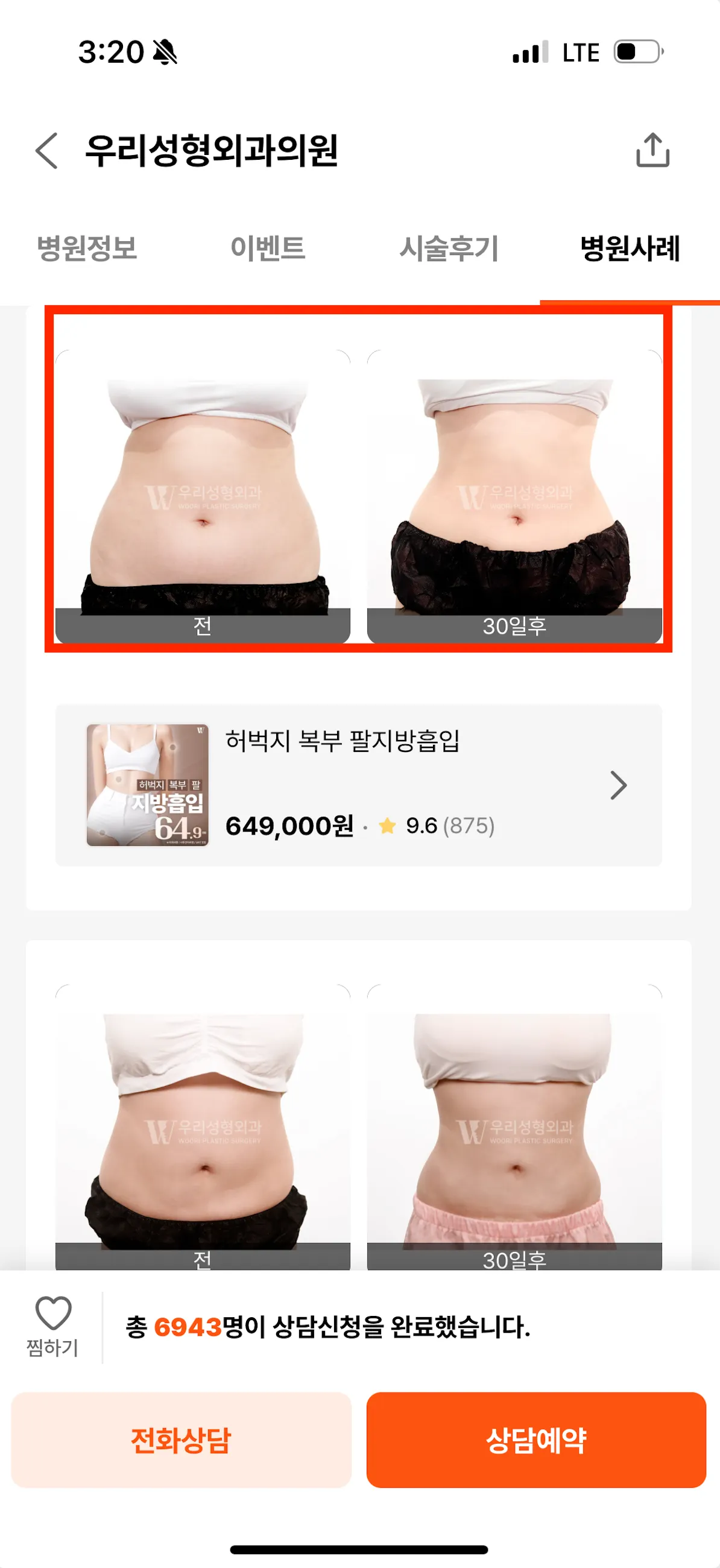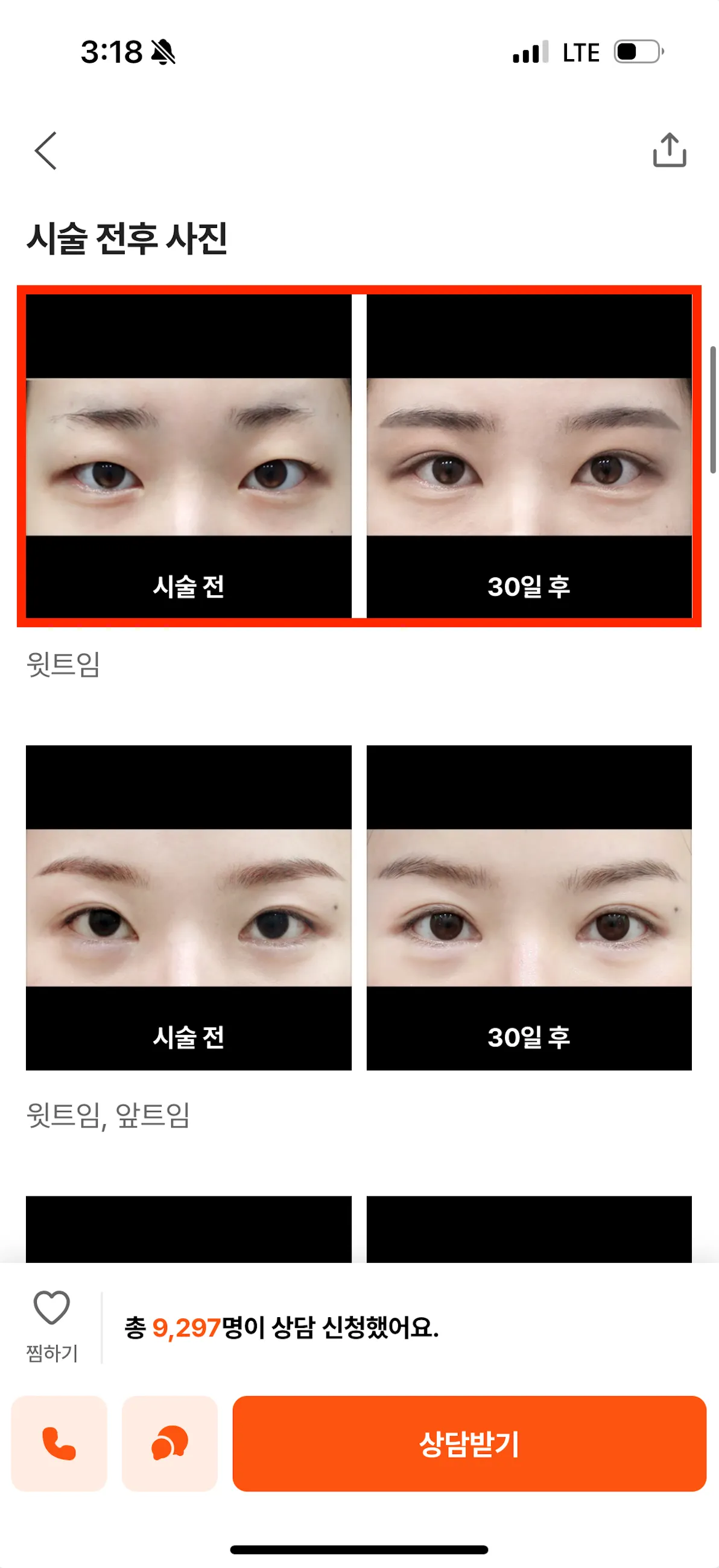 고객은 이 전후사진 정보를 통해 시술 효과, 시술에 대한 세부 정보를 확인하고 시술 선택에 참고해요.