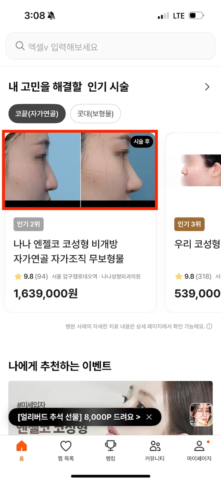 강남언니 앱 내 전후사진은 아래와 같은 곳에서 게시돼요.