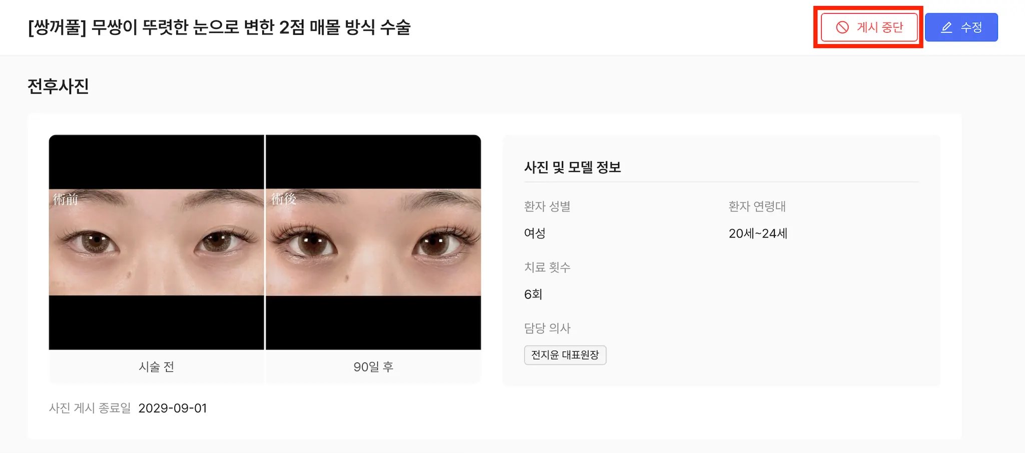 마찬가지로 전후사진 목록이나 전후사진 상세페이지에서 상태를 변경할 수 있어요.