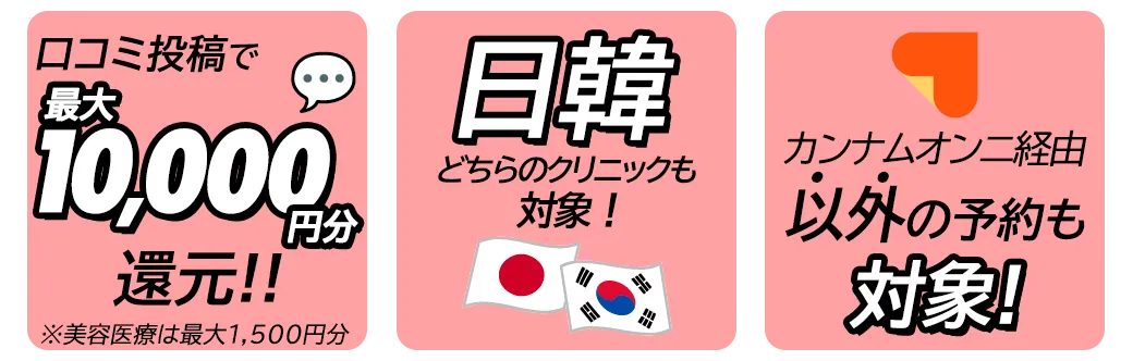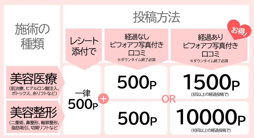 男性・女性整形、乳輪整形、VIO脱毛など写真投稿がNGな施術は対象外となります。