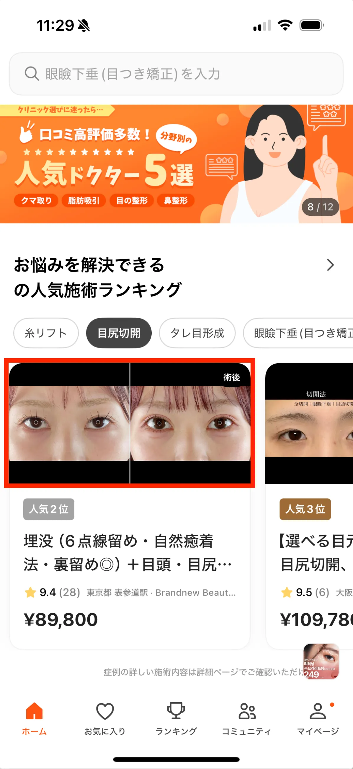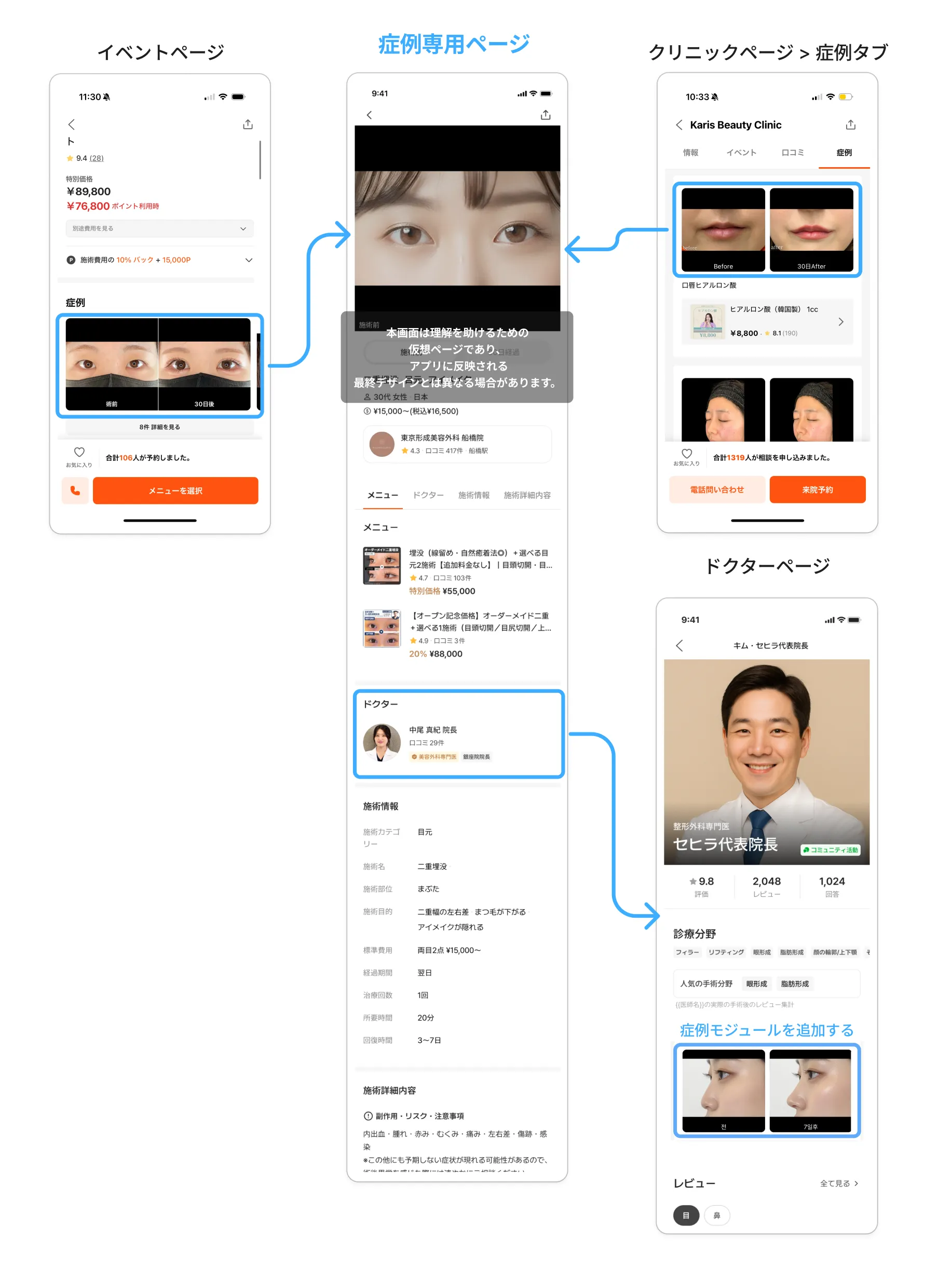 クリニックページ > 症例タブ > 症例写真をタップ > 新しい症例専用ページへ入る