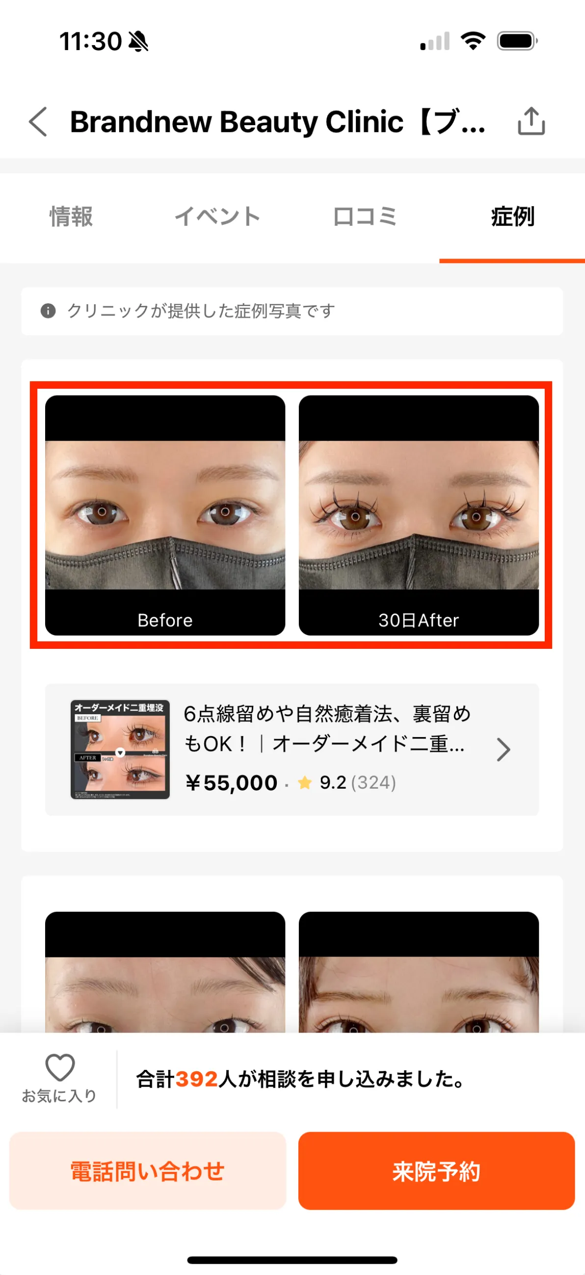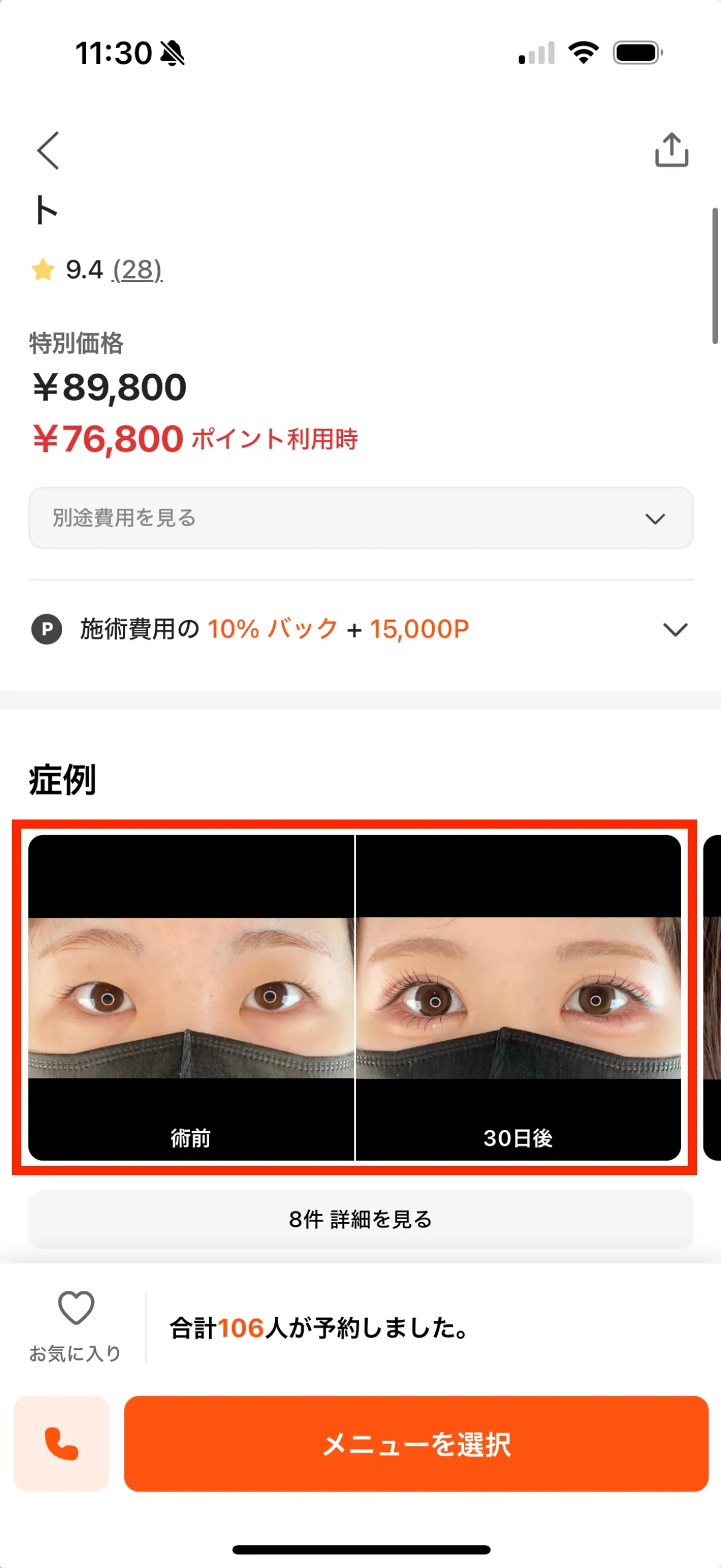 患者さまはこの症例情報から施術の効果、施術に関する詳細情報を確認し、施術を選択の参考にします。