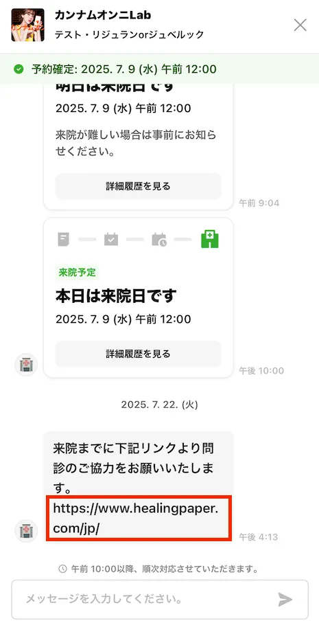 カルテやご案内等でリンクをお送りする際には、「リンクはタップできないため、コピーしてご自身がご利用のインターネット(GoogleやYahooなど)に貼り付けて検索してください」といった形でご案内いただきますようお願いします。