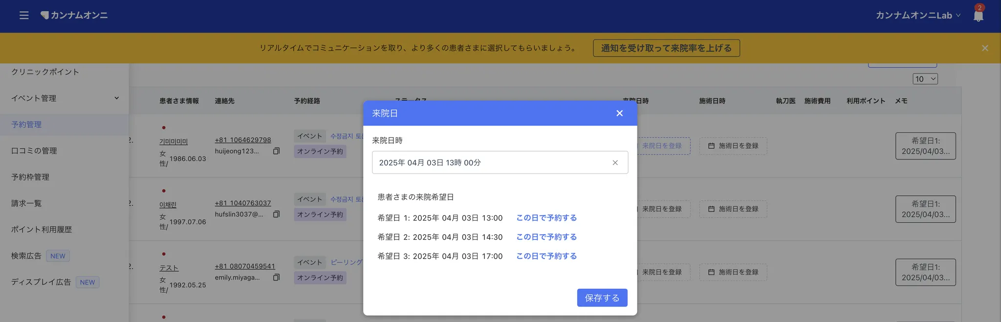 クリニック側も「対応できる日時の選択肢」が増え、予約成約率アップが期待されます