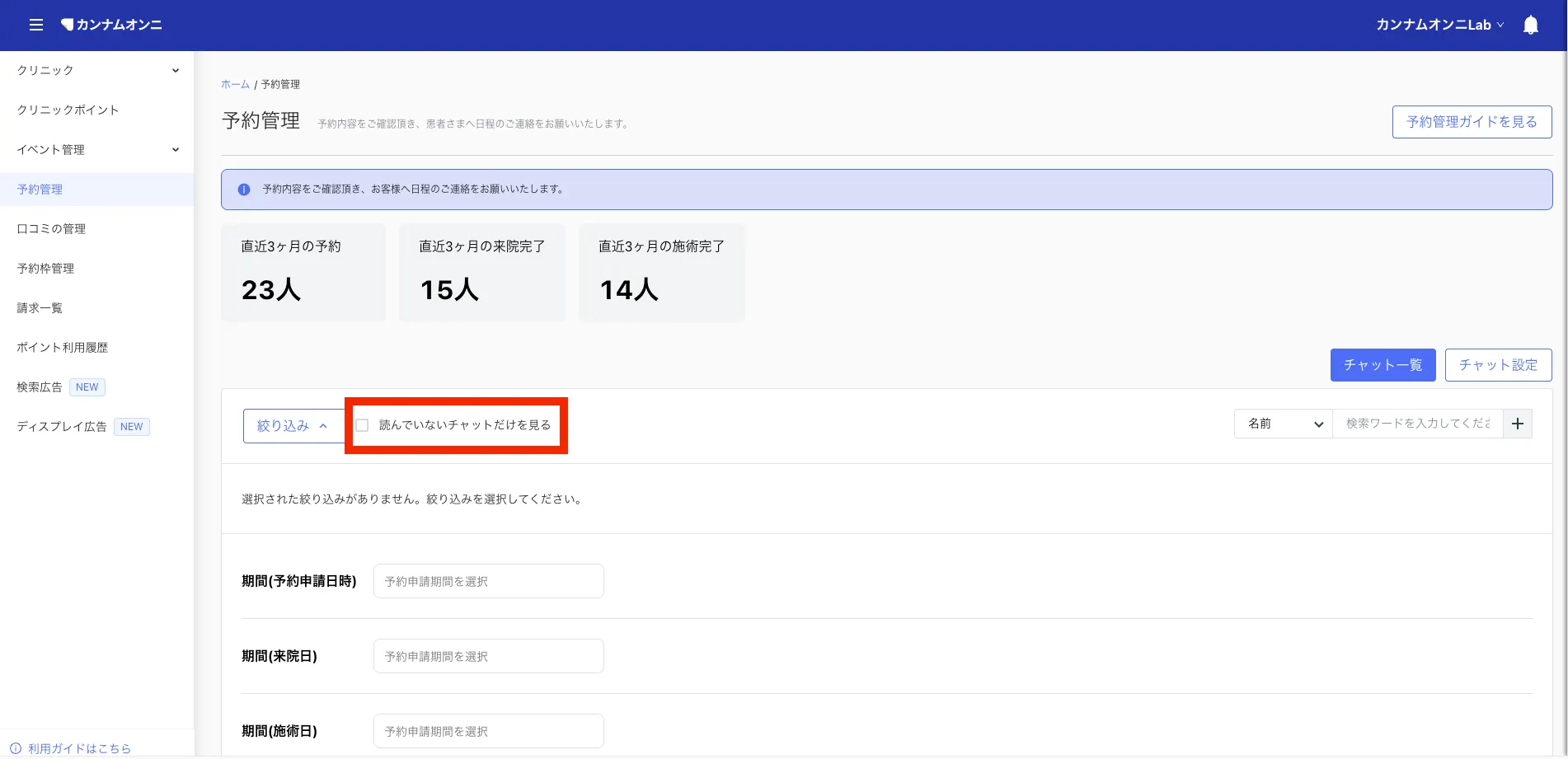 「未読のチャットを見る」ボタンから、対象の予約詳細とチャット内容をすぐに確認できます