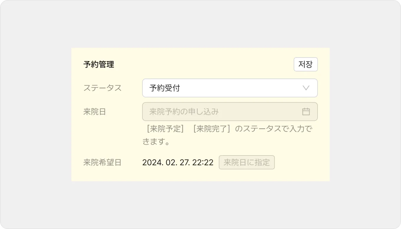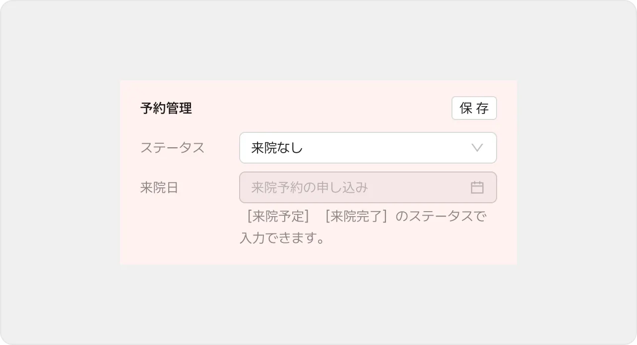 来院日を入力するためには、ステータスを来院予定 または 来院完了 に変更してください。