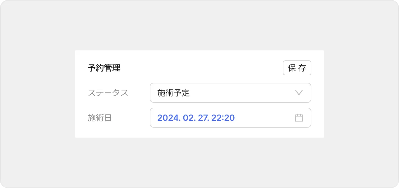 ステータスを 施術予定 に変更し、施術日を入力してください。