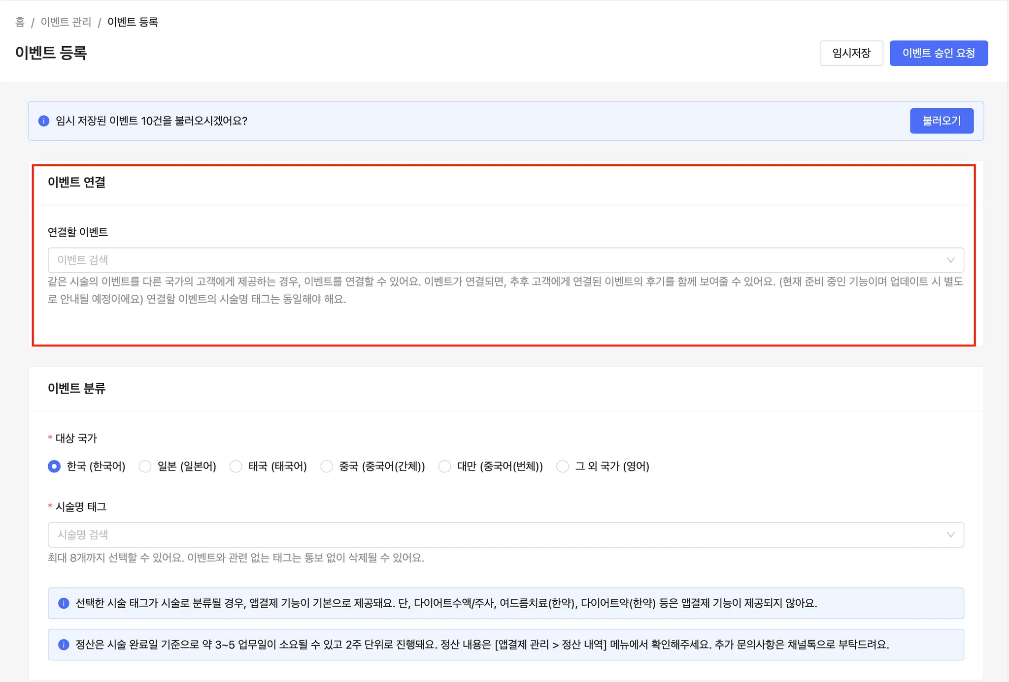 후기 연동을 희망하는 경우, 이벤트 등록 시, ‘연결할 이벤트’ 지정을 부탁드립니다.