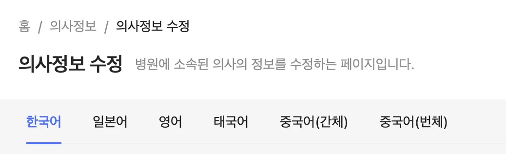 특히, 병원 정보 / 의사 정보는 유저가 병원 선택 시, 중요하게 참고하는 정보이니, 각 서비스별 언어로 꼭 업데이트 부탁드립니다.