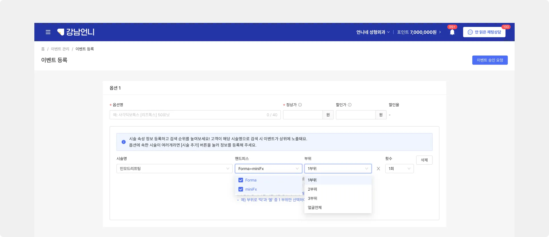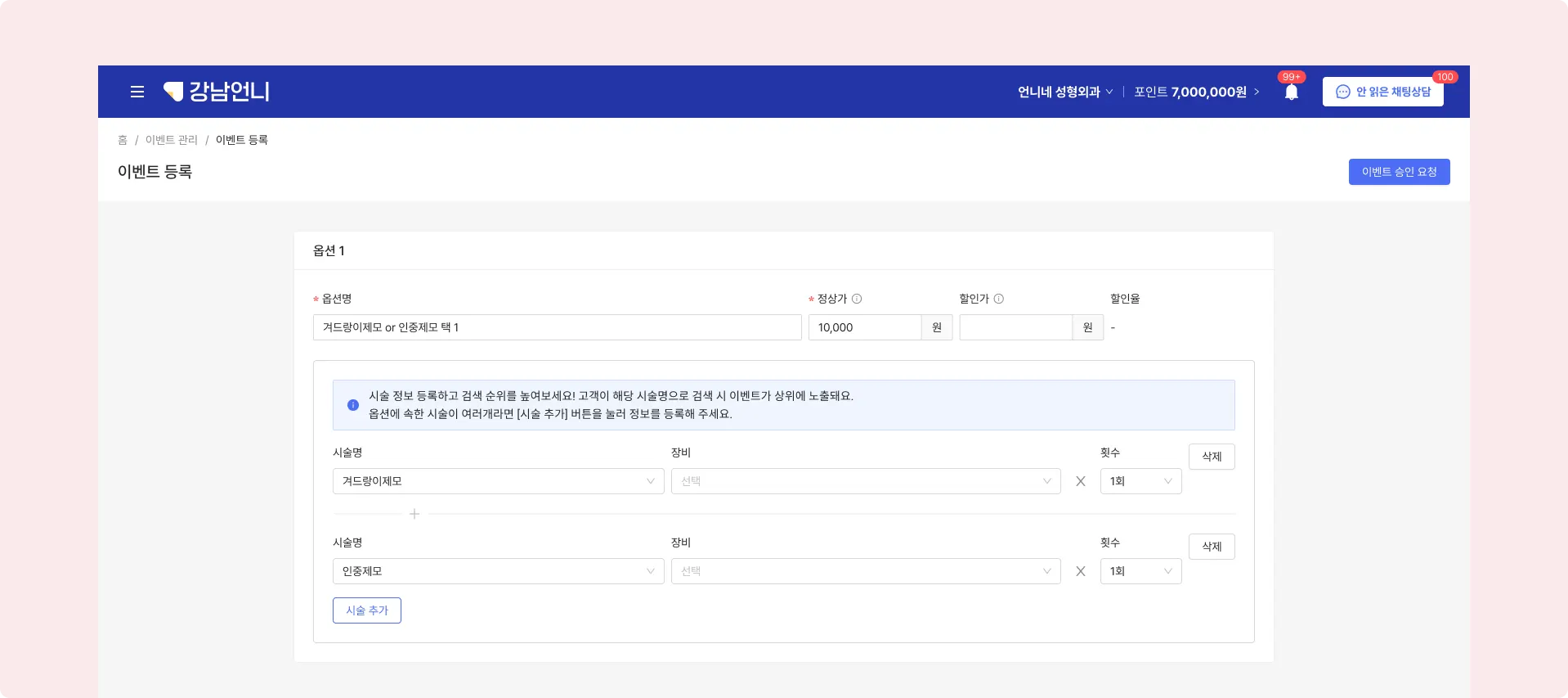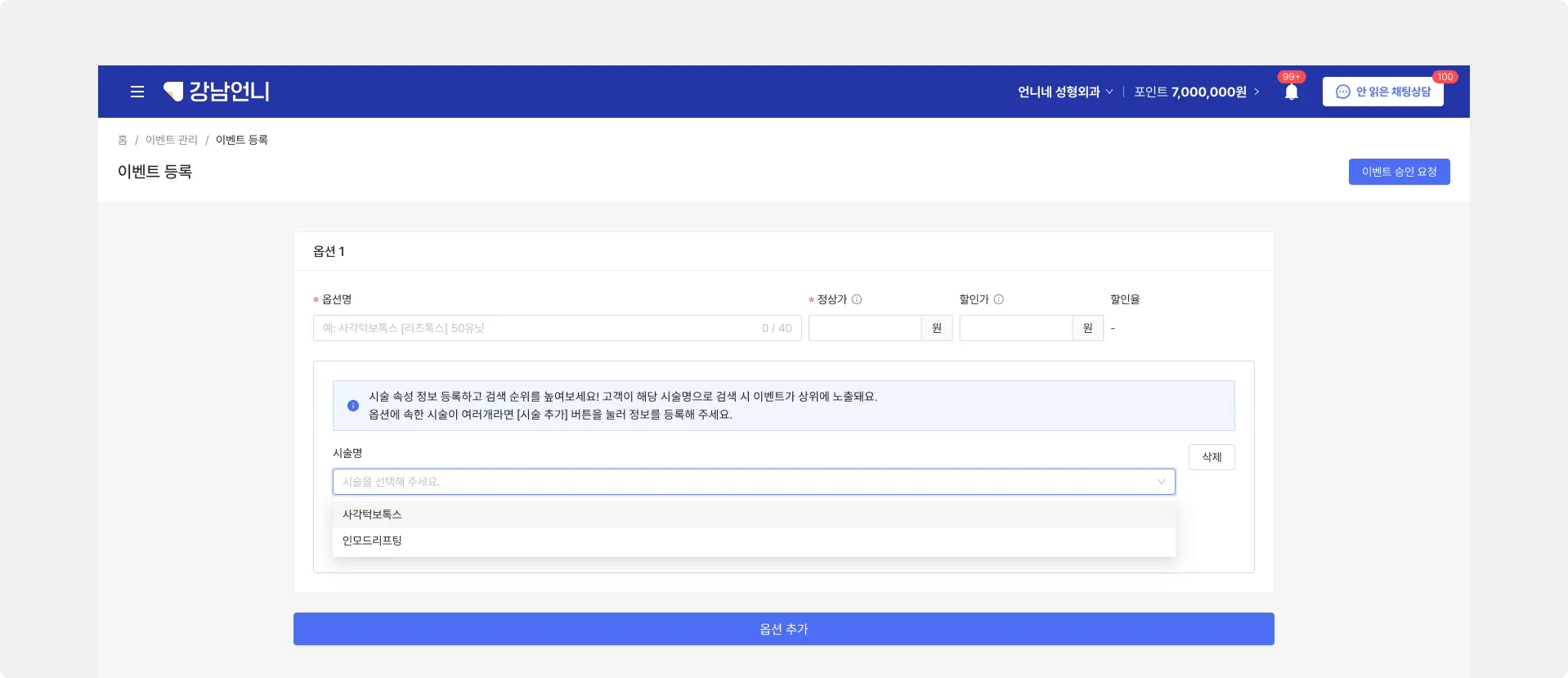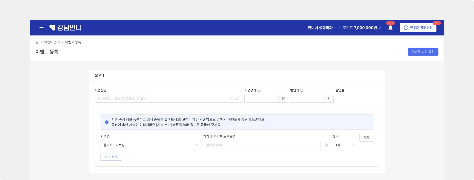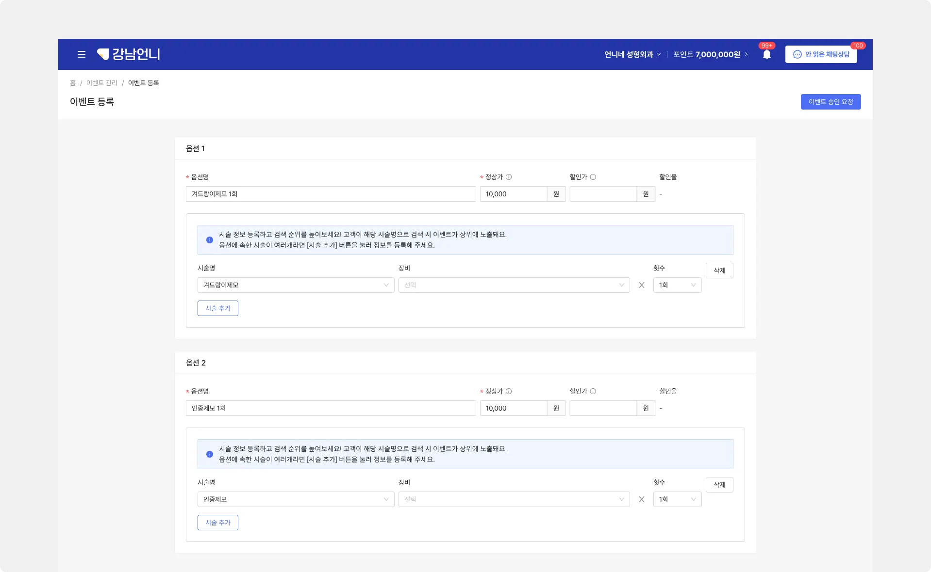 이벤트 옵션 및 시술별 속성 정보 입력 가이드