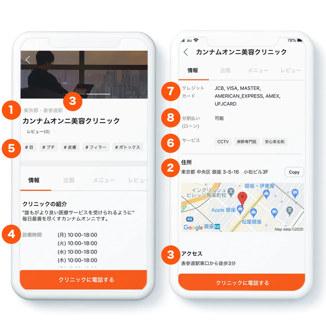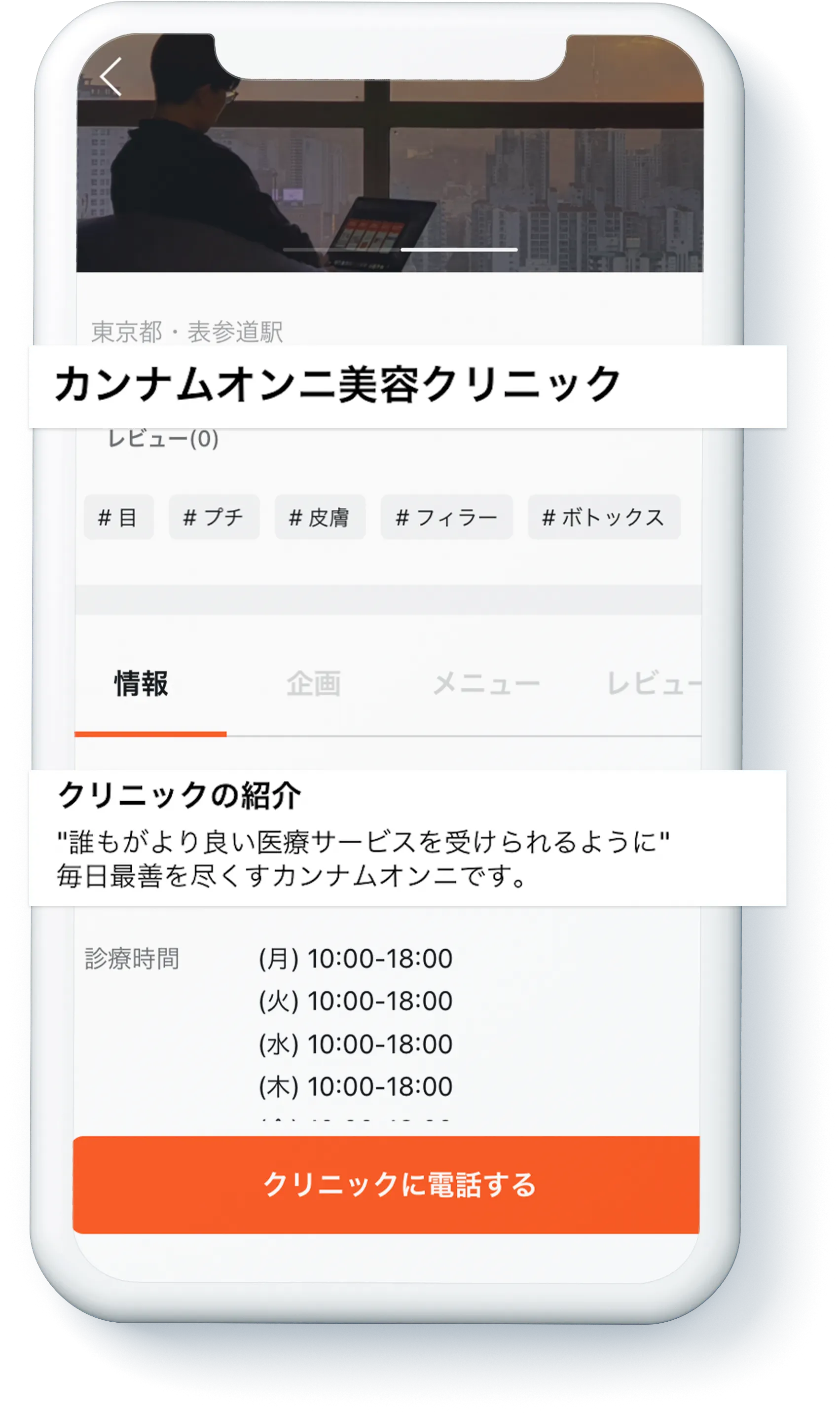 (アプリ内クリニック詳細ページの下部にサービス内容が表示されます。)