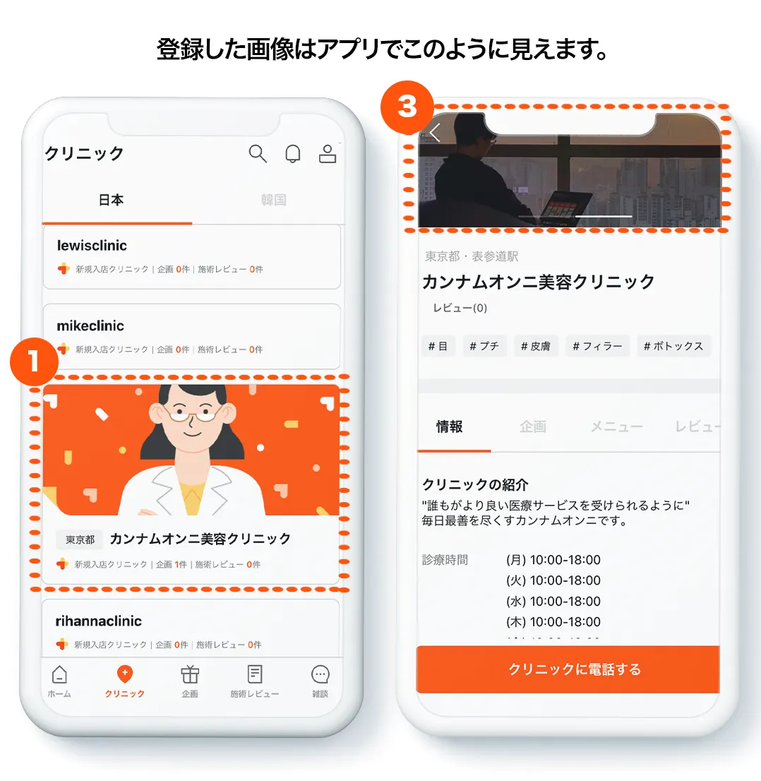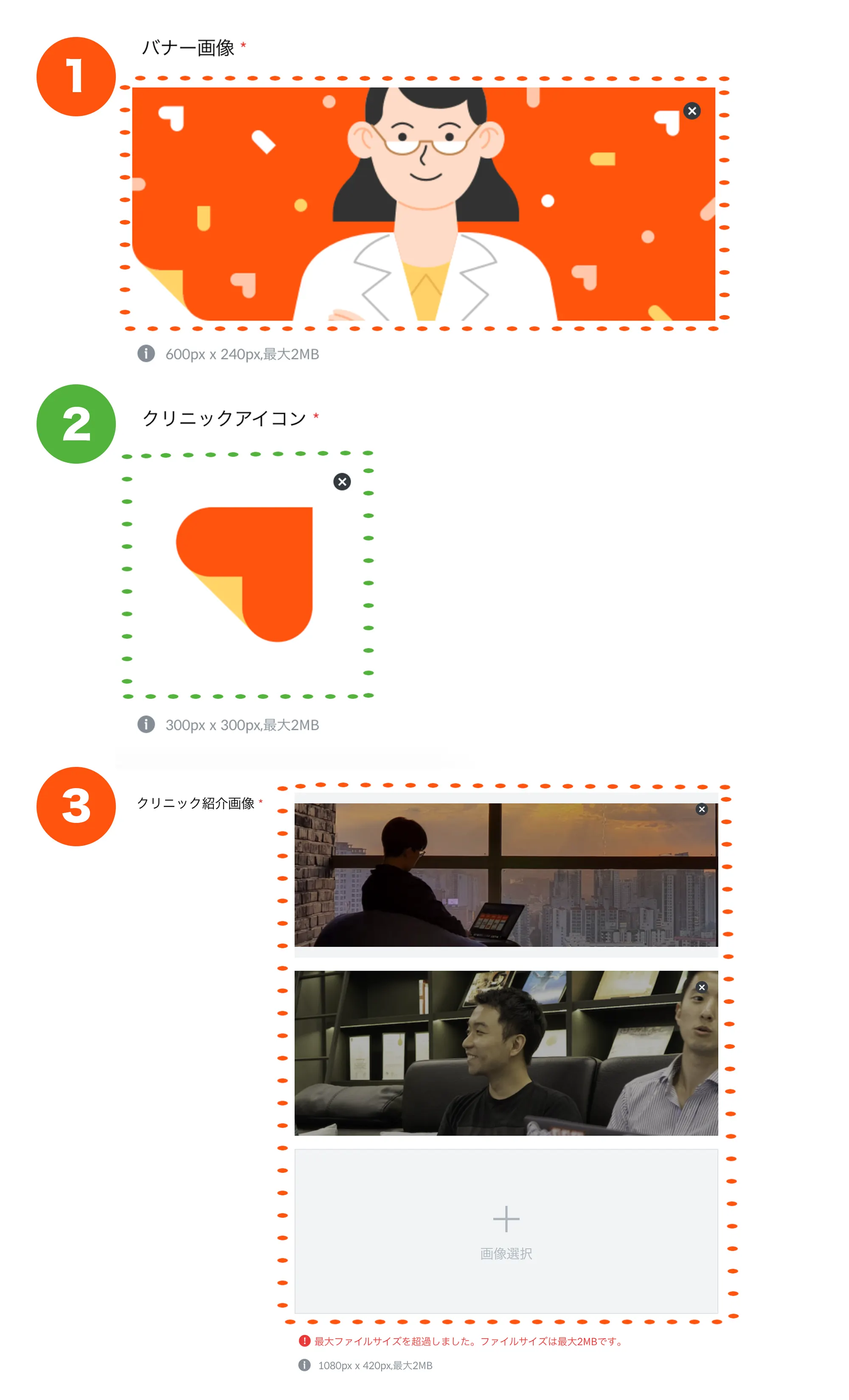 *登録される画像や文章は全てクリニックの管理下にあるものを使用し、著作権を侵害するコンテンツの使用はお控えください。