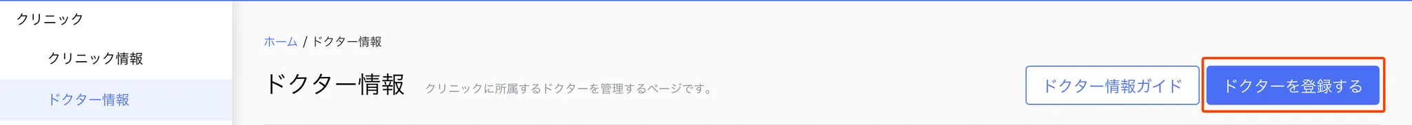 ① ドクターを登録する: 新しいドクターを登録するページに移動します。