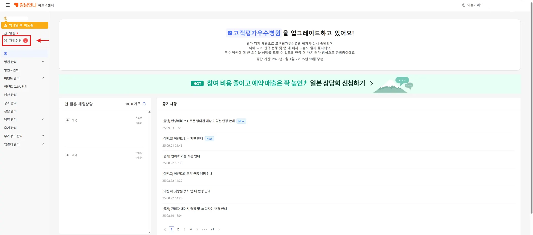 채팅상담 기능 ON/OFF 아래 절차 참고해 주세요
