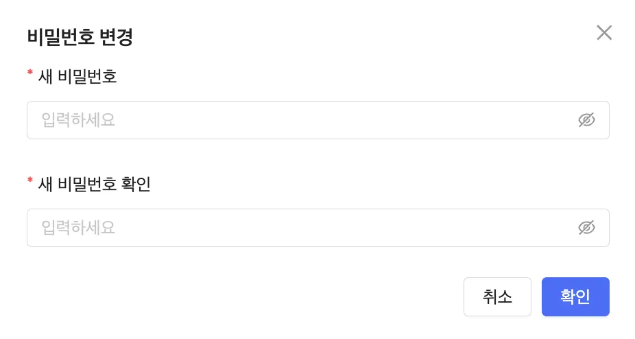 ‘비밀번호 변경’ 화면에서 변경하고자 하는 새로운 비밀번호를 입력한 다음 ‘확인’을 누릅니다.