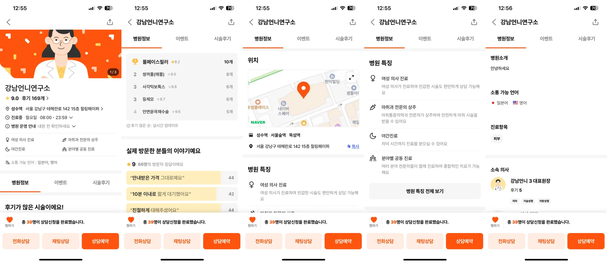 병원 특징: 병원에 해당되는 특징을 선택하면 강남언니 앱 병원 페이지 상단에 보여지게 됩니다.