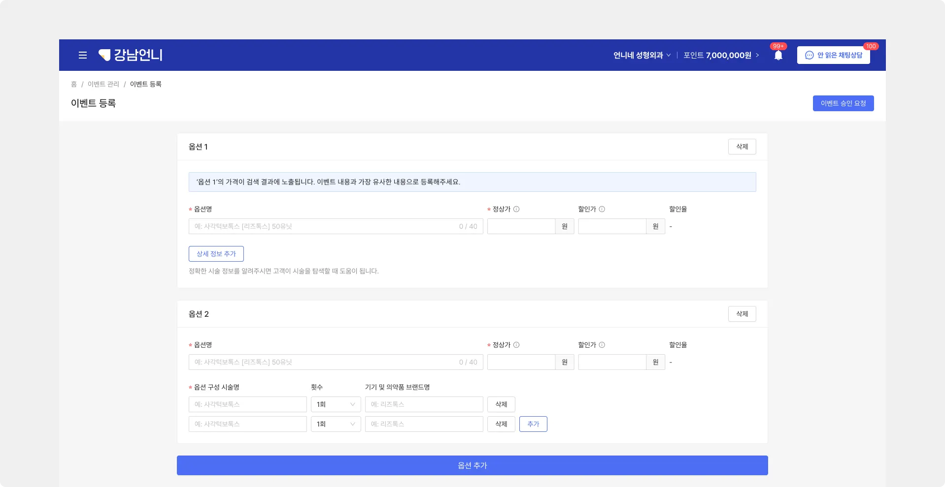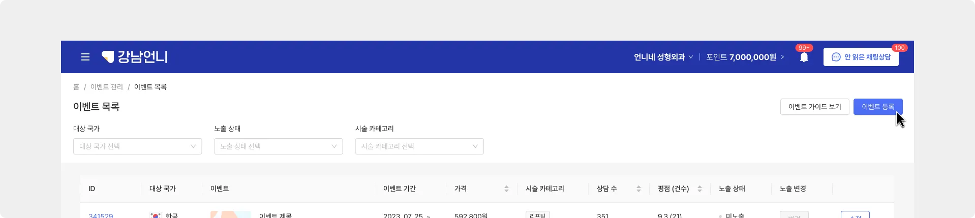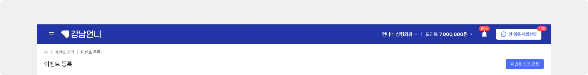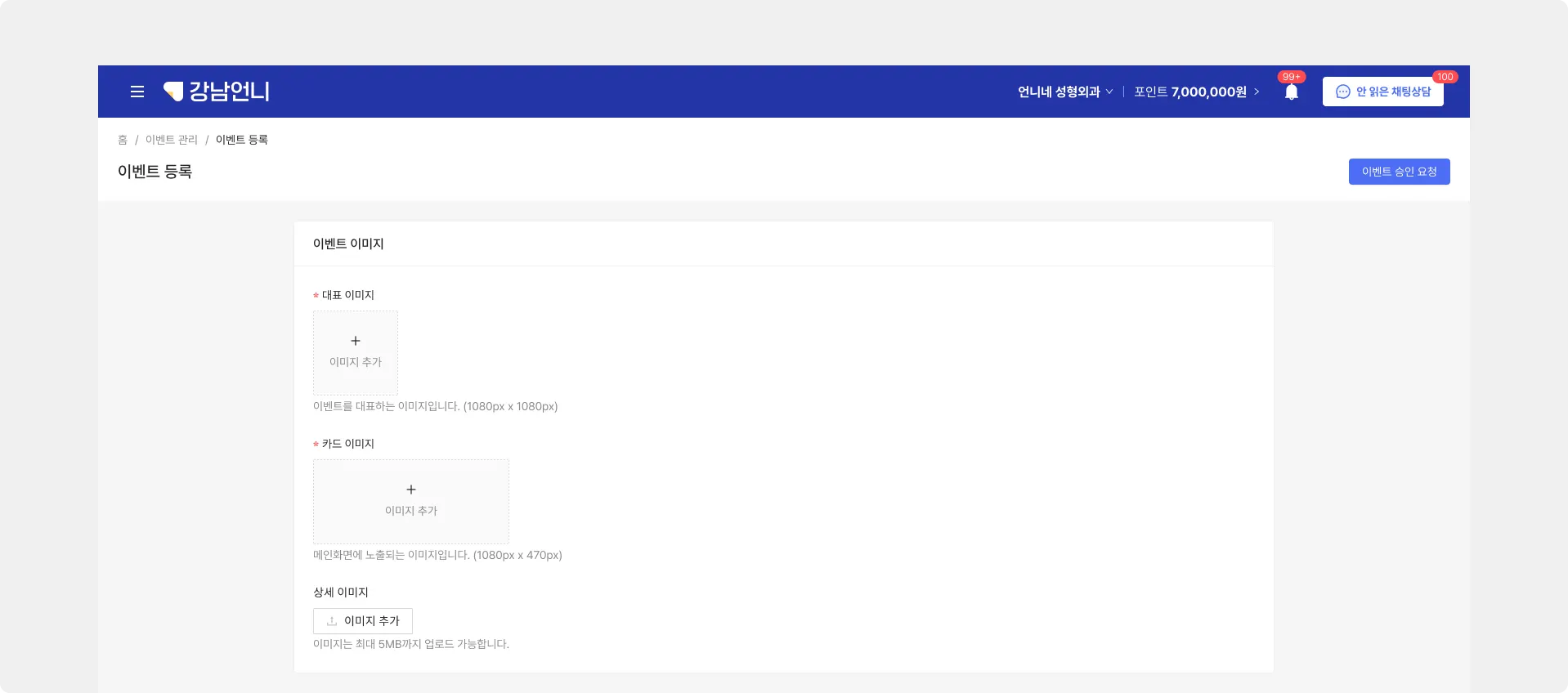 [이벤트 승인 요청] 버튼을 클릭하면 강남언니 이벤트 검수팀에 내용이 전달돼요.